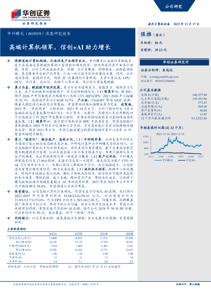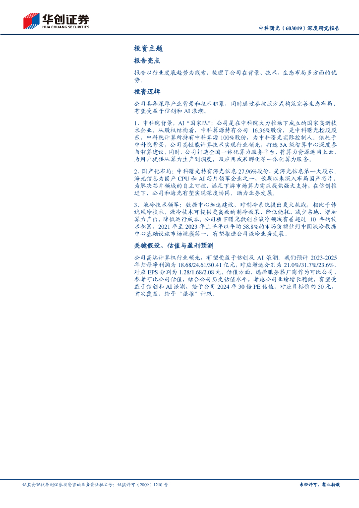 华创证券:中科曙光(603019.SH)深度研究报告:高端计算机领军,信创+AI助力增长.pdf