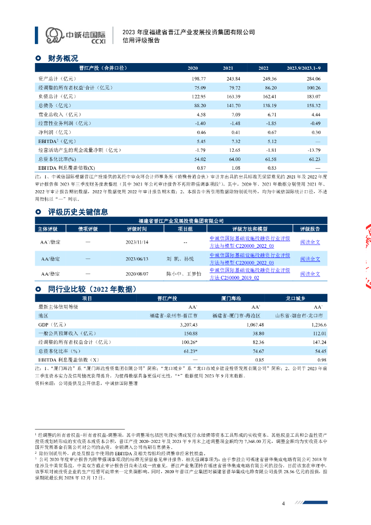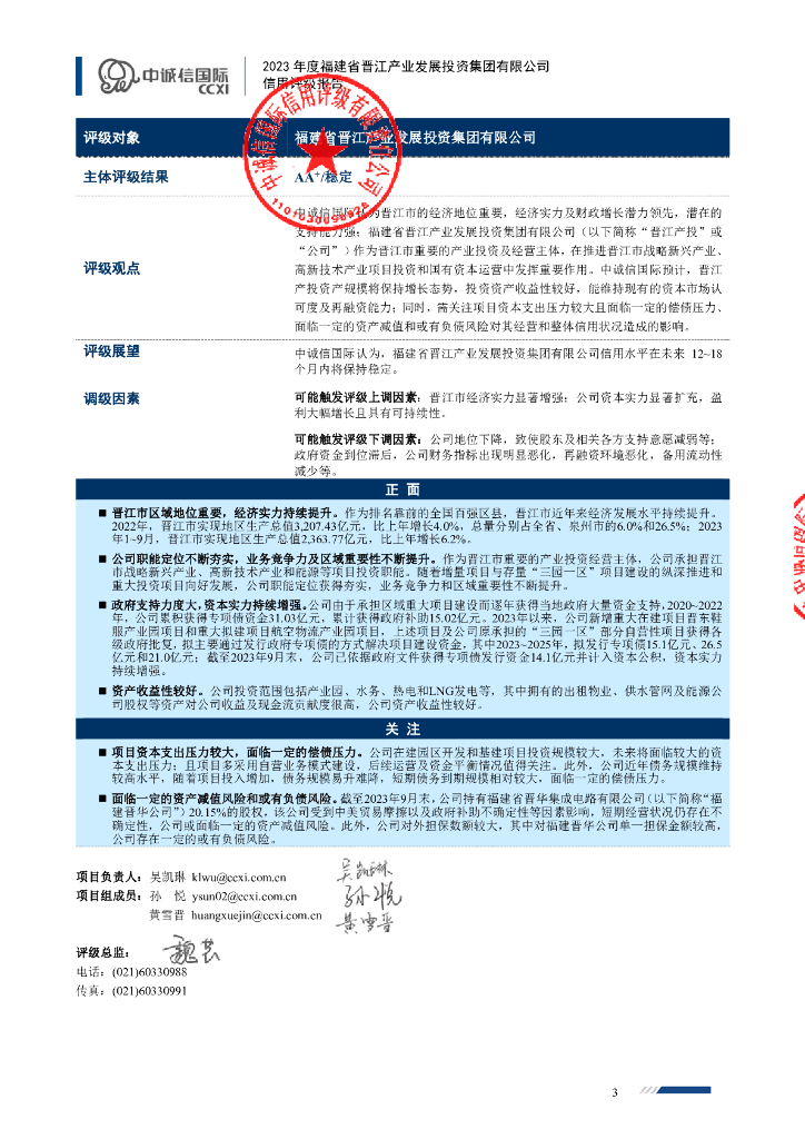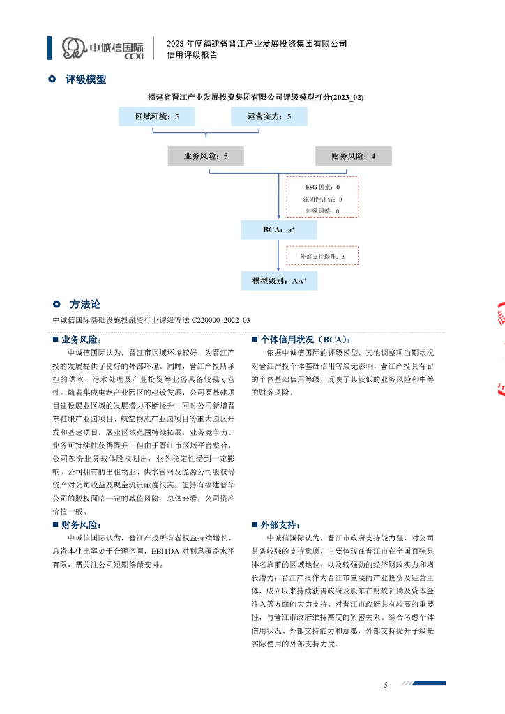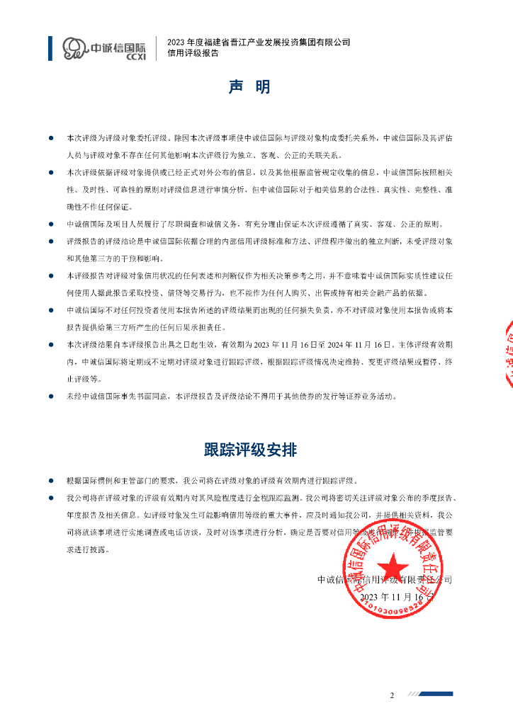中诚信:福建省晋江产业发展投资集团有限公司主体信用评级报告及跟踪评级安排.pdf