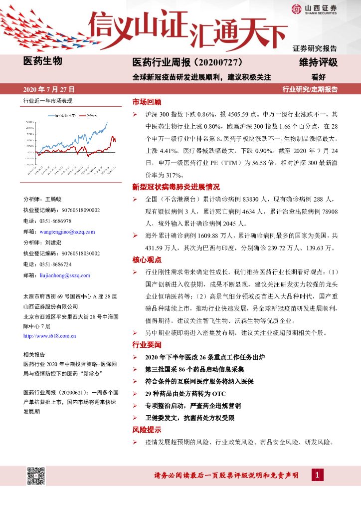 山西证券:医药行业周报:全球新冠疫苗研发进展顺利,建议积极关注.pdf
