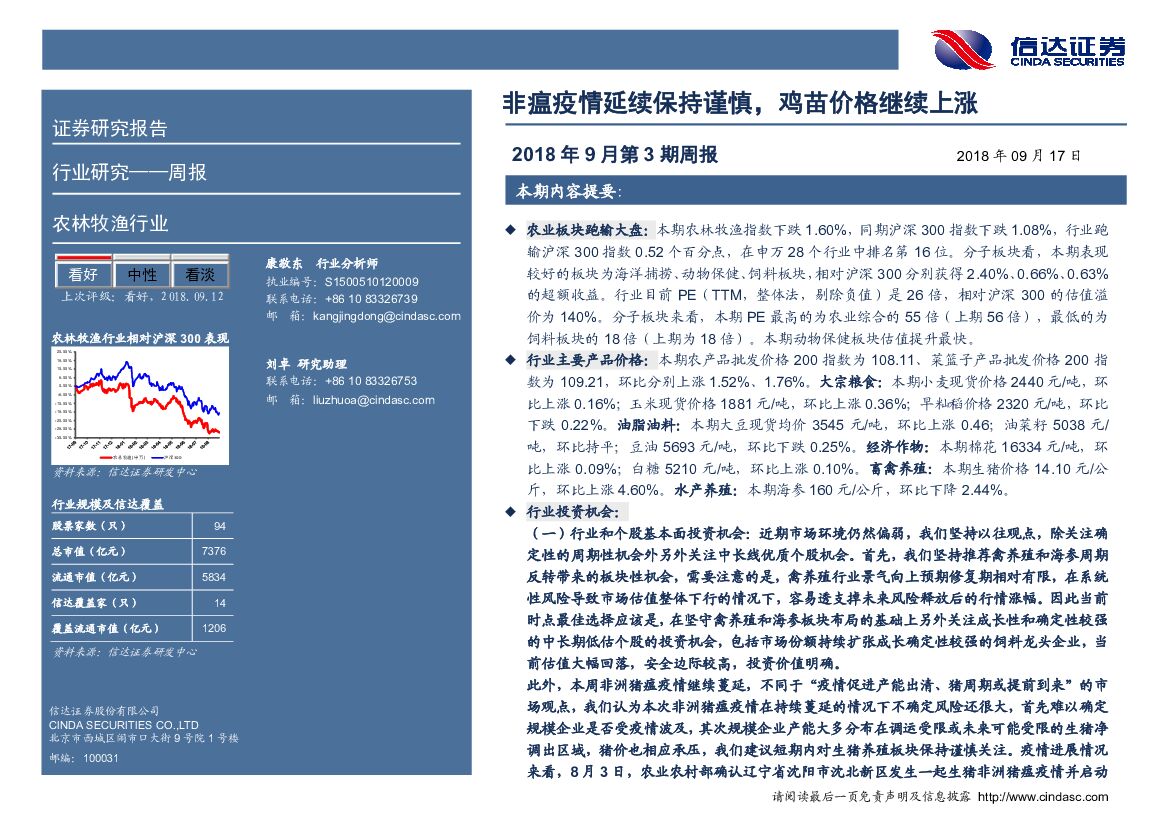 信达证券:农林牧渔2018年9月第3期周报:非瘟疫情延续保持谨慎,鸡苗价格继续上涨.pdf