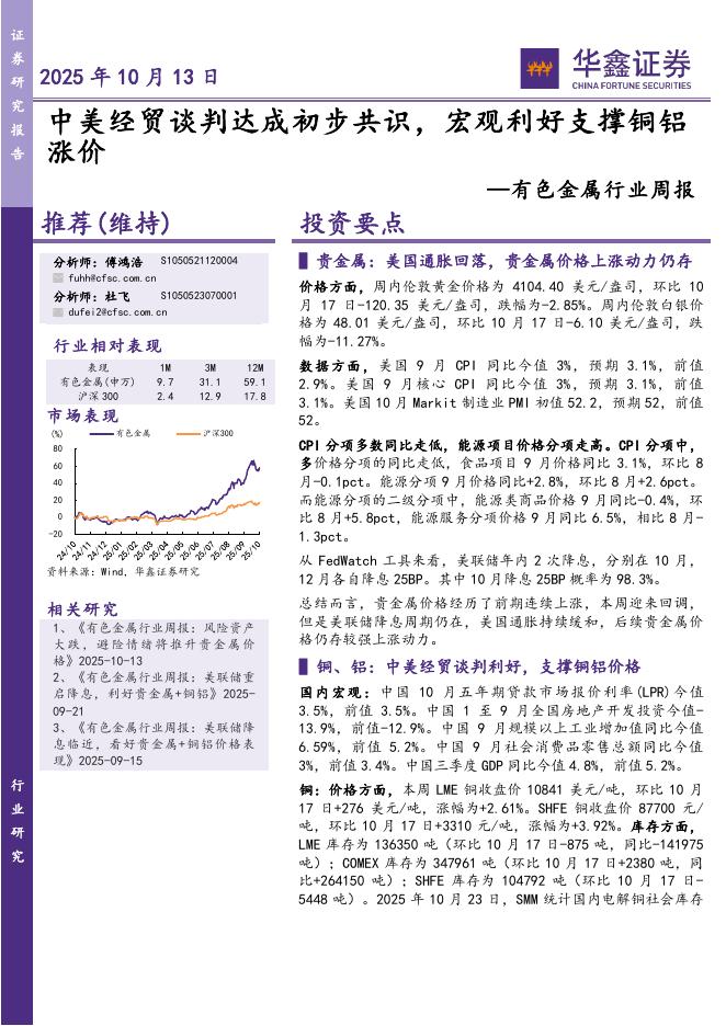 华鑫证券:有色金属行业周报:中美经贸谈判达成初步共识,宏观利好支撑铜铝涨价.pdf