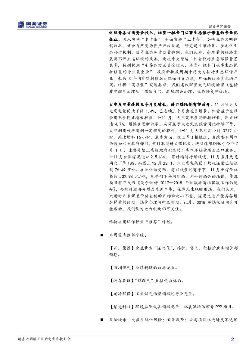 国海证券:公用事业及环保行业周报:非电工业“超低排放”打响第一枪,污染攻坚强力推进.pdf