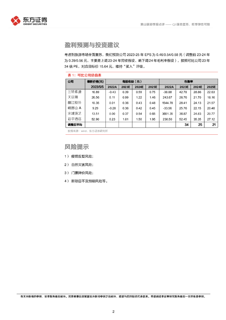 东方证券:黄山旅游23Q1季报及2022年报点评:Q1强势复苏,旺季弹性可期.pdf