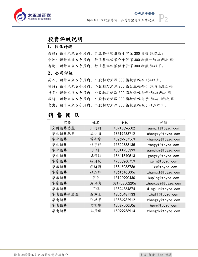 太平洋证券:巨化股份(600160)-制冷剂行业政策落地,公司有望迎来业绩拐点.pdf