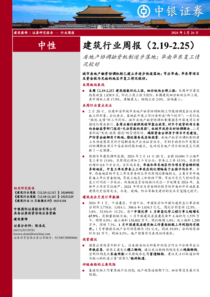 中银证券:建筑行业周报:房地产协调融资机制逐步落地;华南华东复工情况较好.pdf