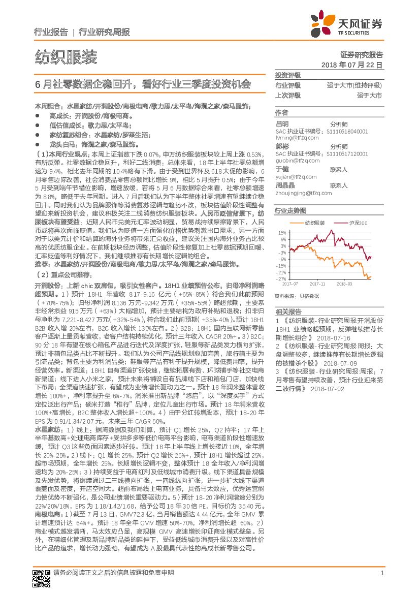 天风证券:纺织服装行业研究周报:6月社零数据企稳回升,看好行业三季度投资机会.pdf