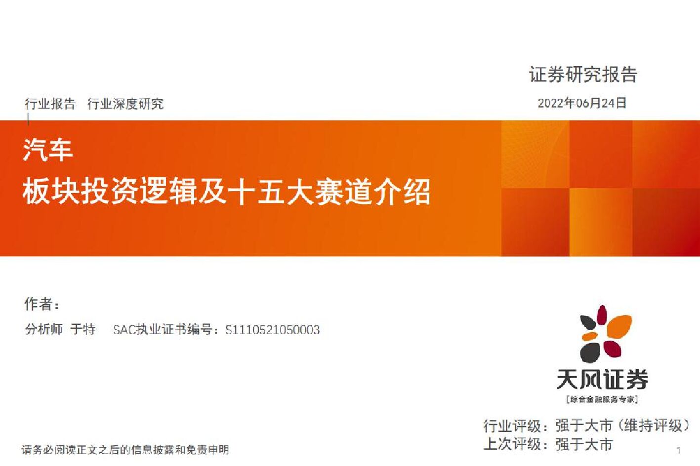 天风证券:汽车行业:板块投资逻辑及十五大赛道介绍.pdf