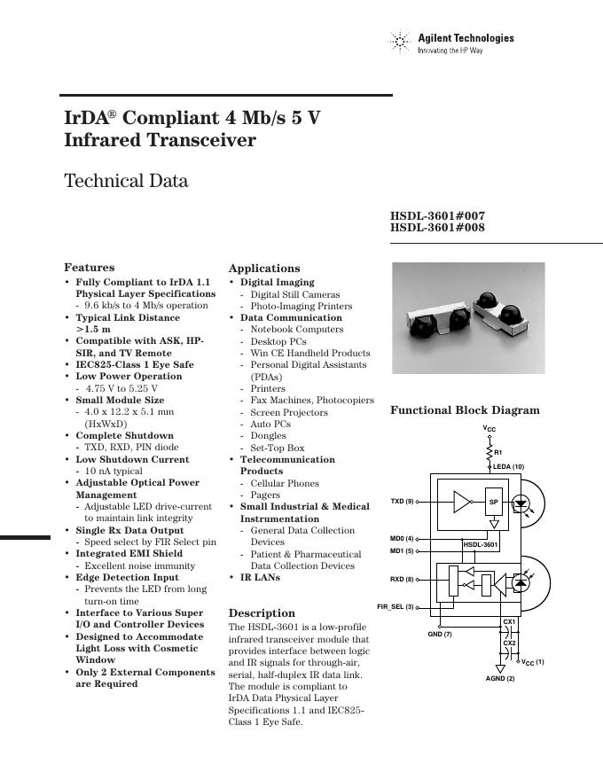 Agilent HSDL-3601#007, HSDL-3601#008 数据手册.pdf