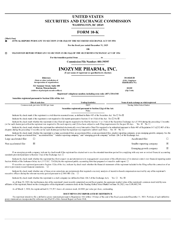 Inozyme Pharma(INZY)2023财年年度报告(英文版).pdf