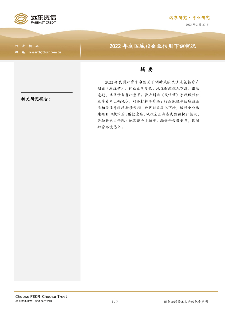 远东资信:2022年我国城投企业信用下调概况报告.pdf