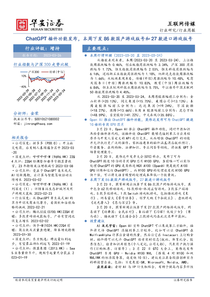 华安证券:互联网传媒行业周报:ChatGPT插件功能发布,本周下发86款国产游戏版号和27款进口游戏版号.pdf