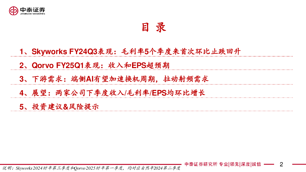 中泰证券:【中泰电子】AI全视角-科技大厂财报专题|Skyworks&QorvoCY24Q2点评:端侧AI有望拉动射频需求增长.pdf