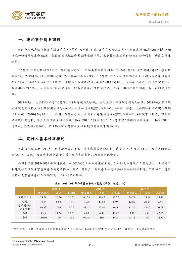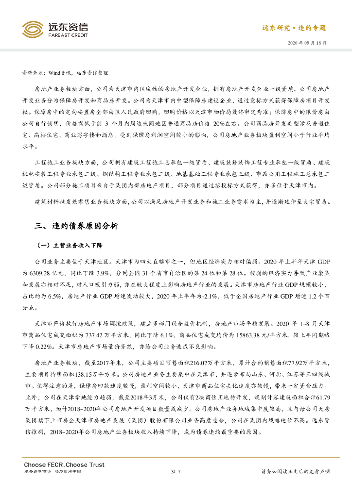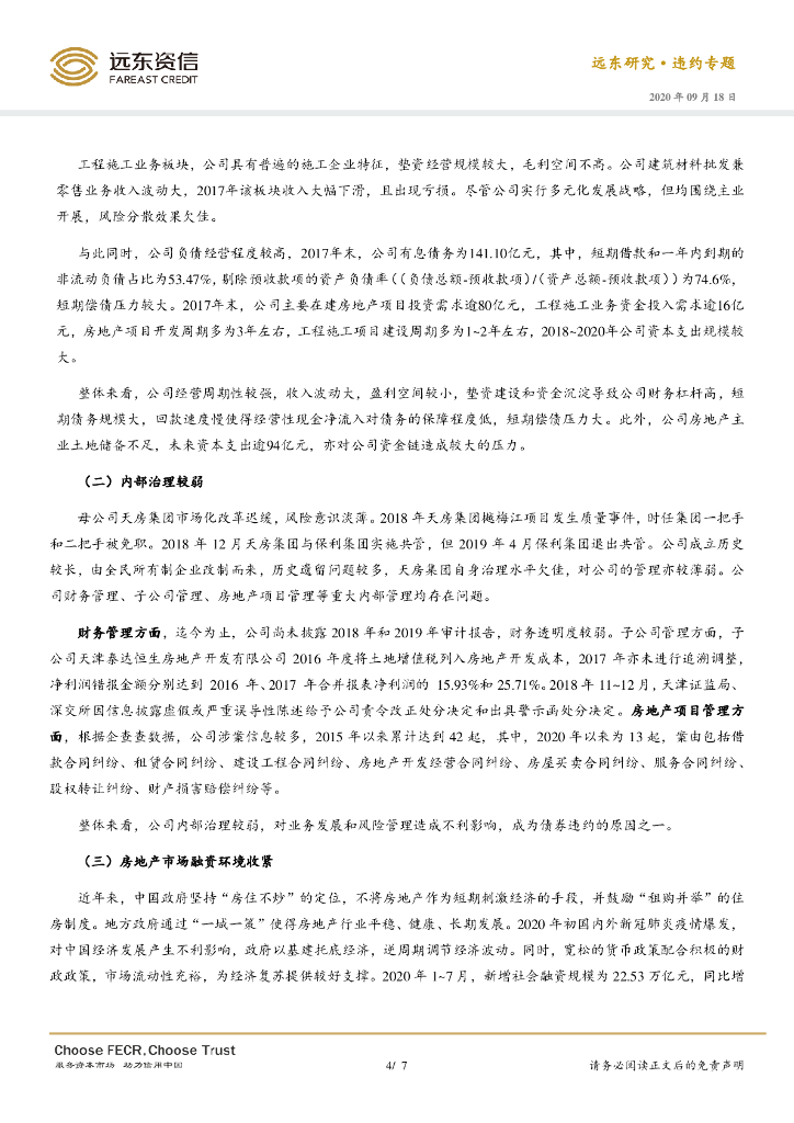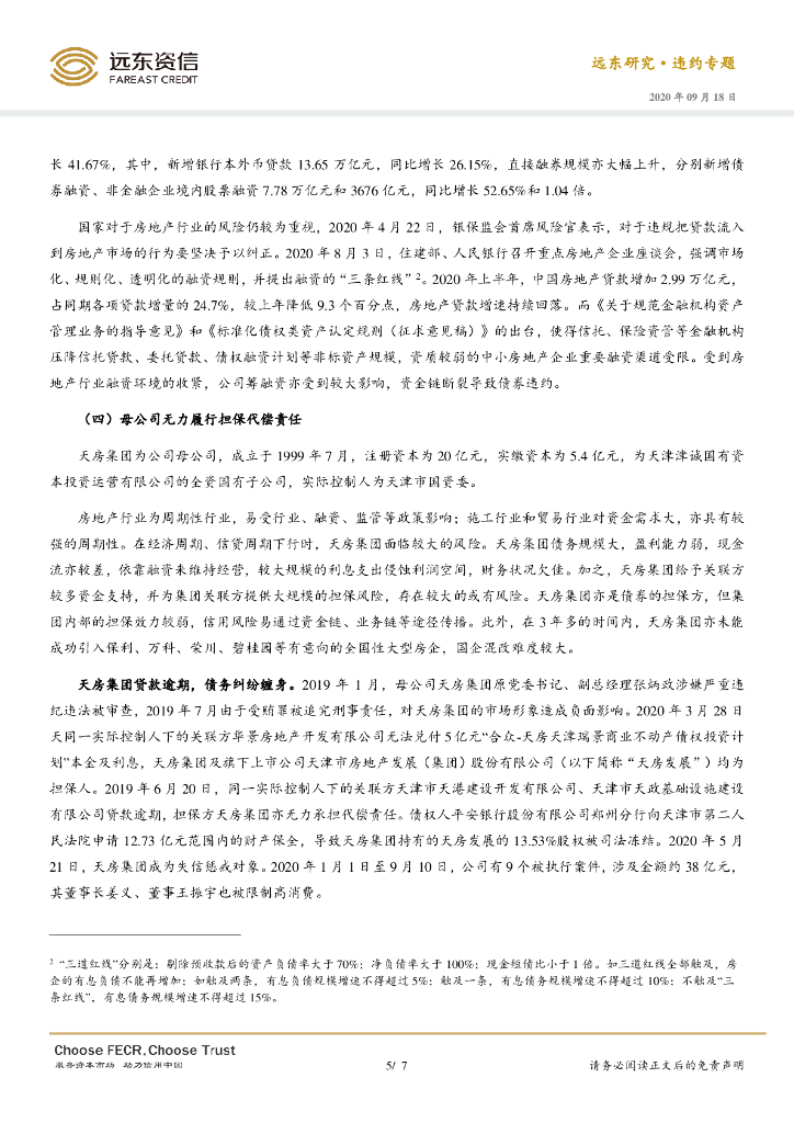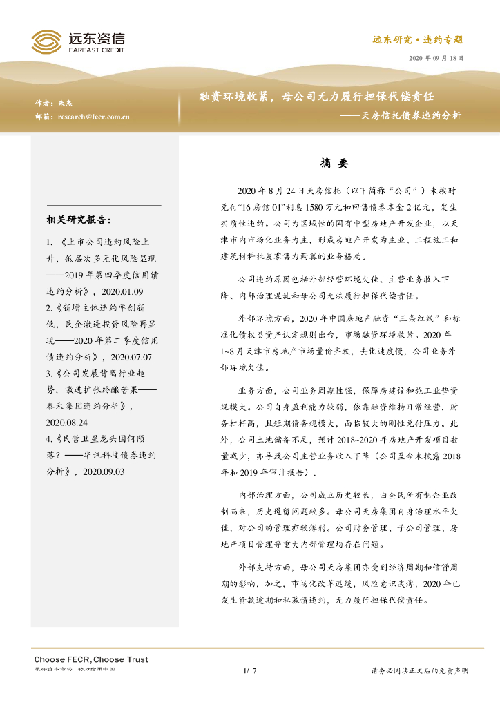 远东资信:融资环境收紧,母公司无力履行担保代偿责任——天房信托债券违约分析.pdf