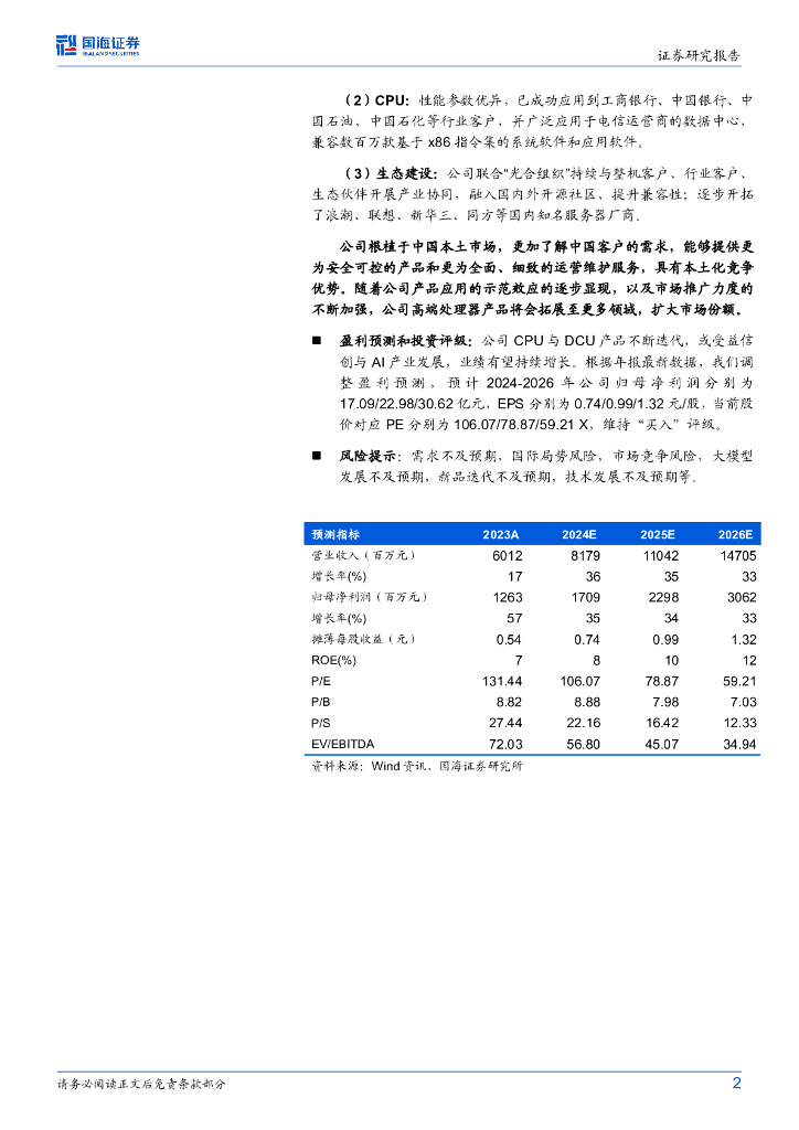 国海证券:海光信息(688041)-2023年年报点评:2023年业绩持续高增,产品和生态不断加强.pdf