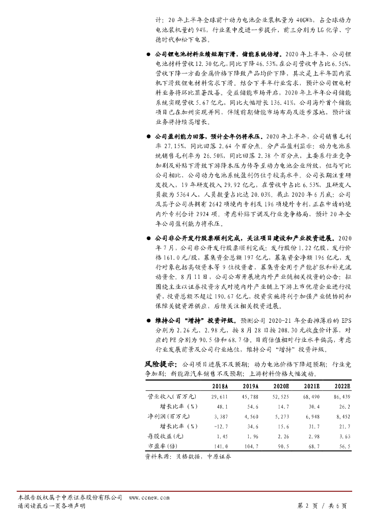 中原证券:宁德时代(300750)-中报点评:业绩符合预期,动力龙头值得关注.pdf