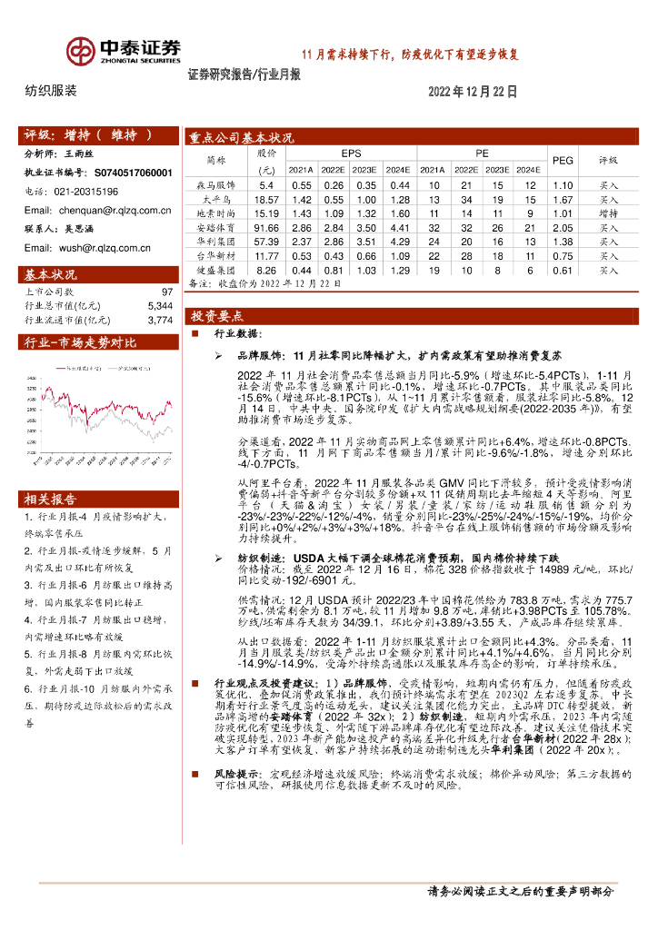 中泰证券:纺织服装行业月报:11月需求持续下行,防疫优化下有望逐步恢复.pdf