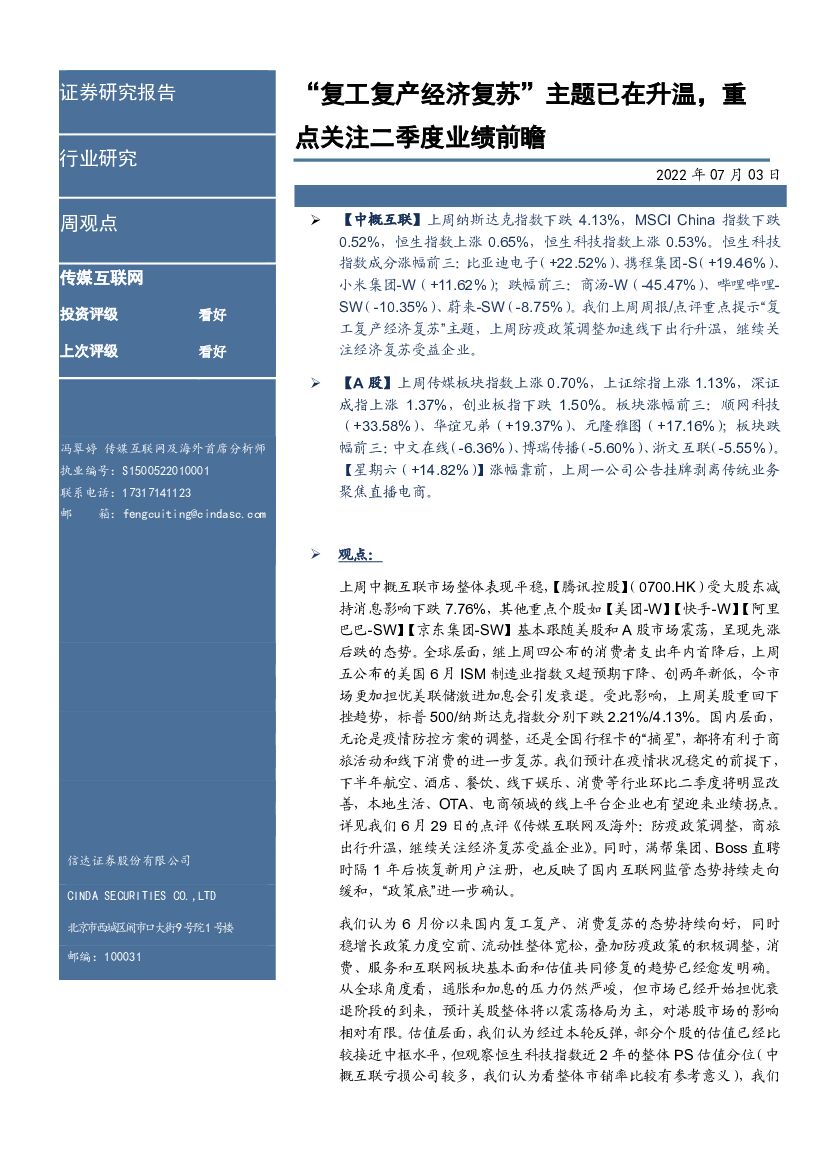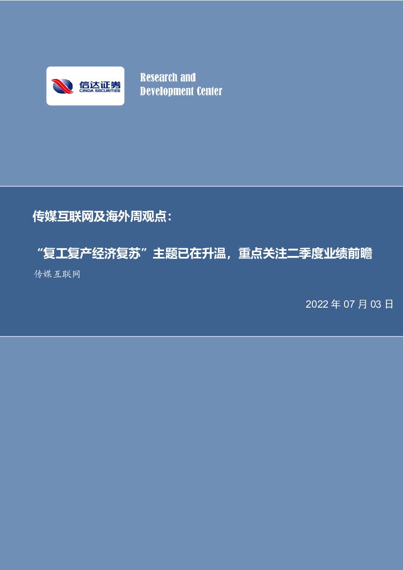 信达证券:传媒互联网及海外周观点:“复工复产经济复苏”主题已在升温,重点关注二季度业绩前瞻.pdf