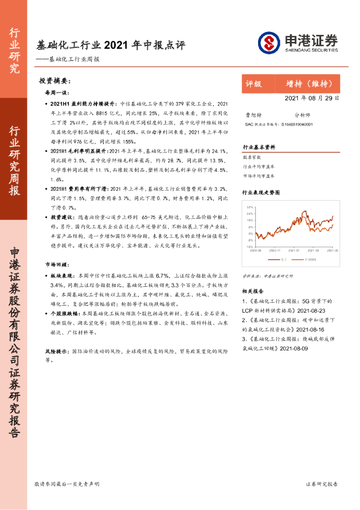 申港证券:基础化工行业周报:基础化工行业2021年中报点评.pdf