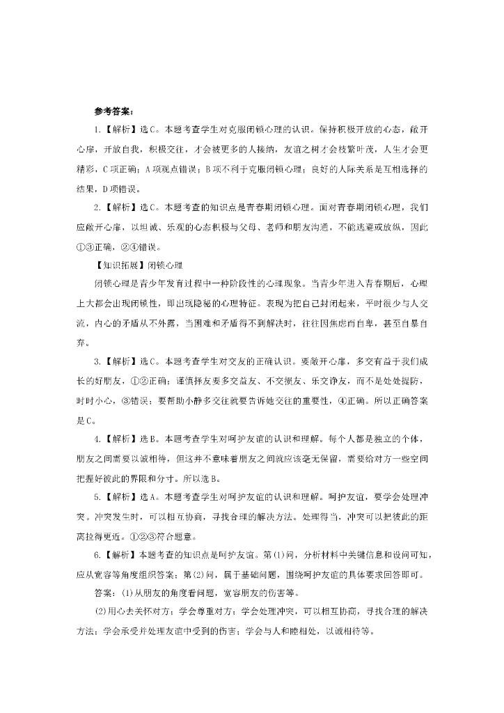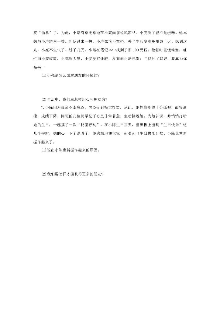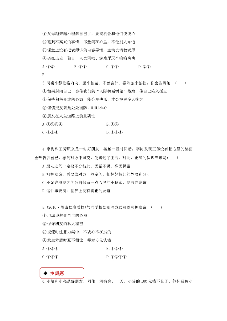 七年级上册 初中道德与法治5.1《让友谊之树常青》同步练习.doc