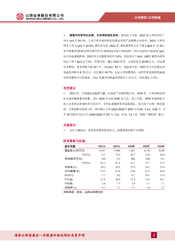 山西证券:潮宏基(002345)-线下渠道保持积极扩张,24Q1业绩实现稳健增长.pdf