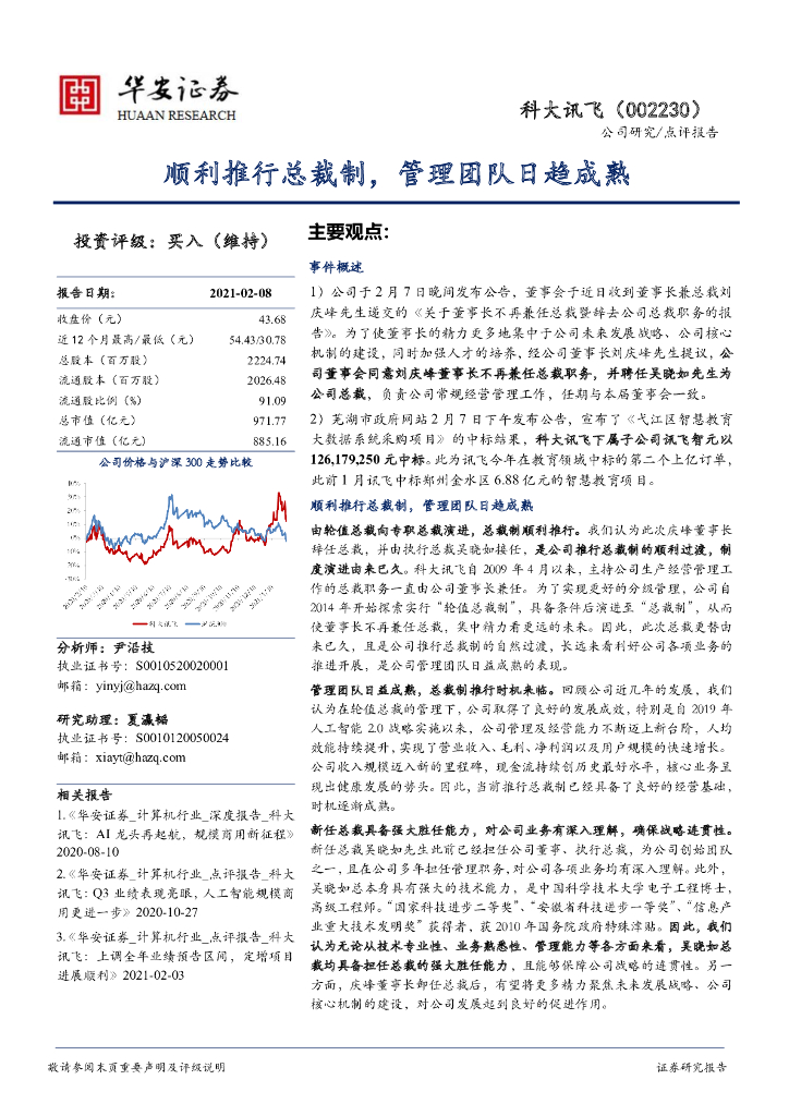 华安证券:科大讯飞(002230)-顺利推行总裁制,管理团队日趋成熟.pdf