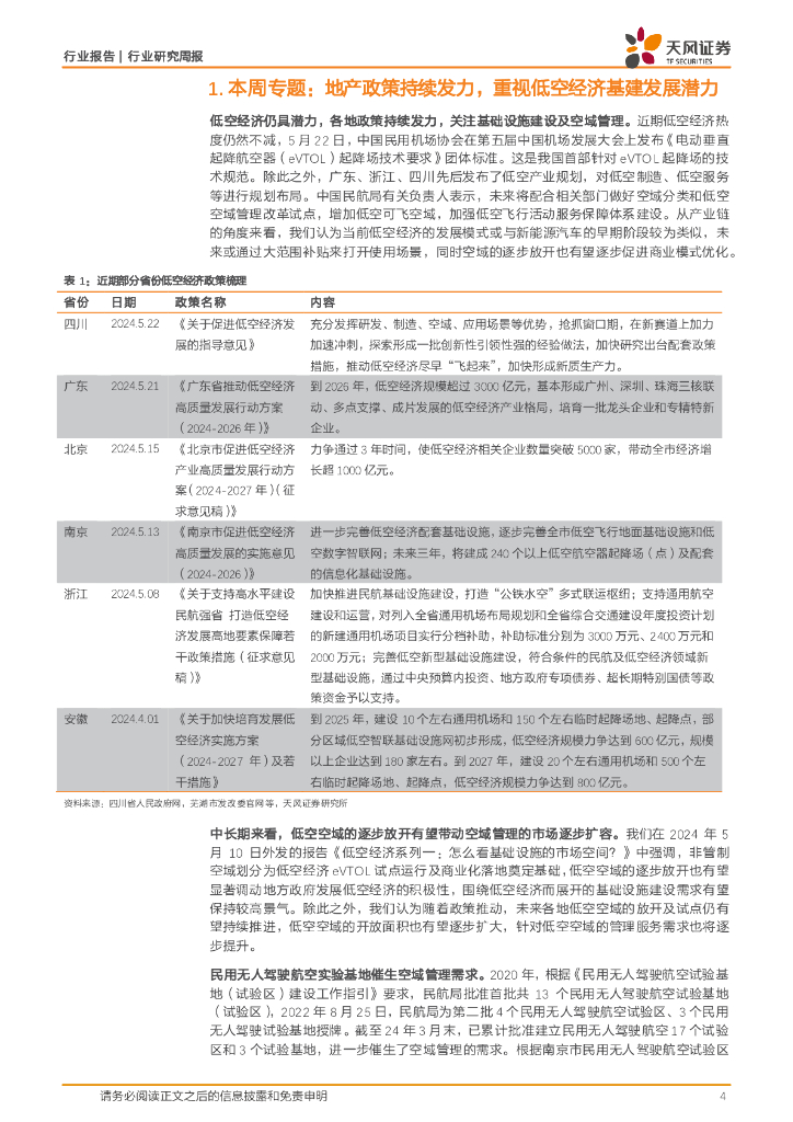 天风证券:建筑装饰行业研究周报:地产政策持续发力,重视低空经济基建发展潜力.pdf