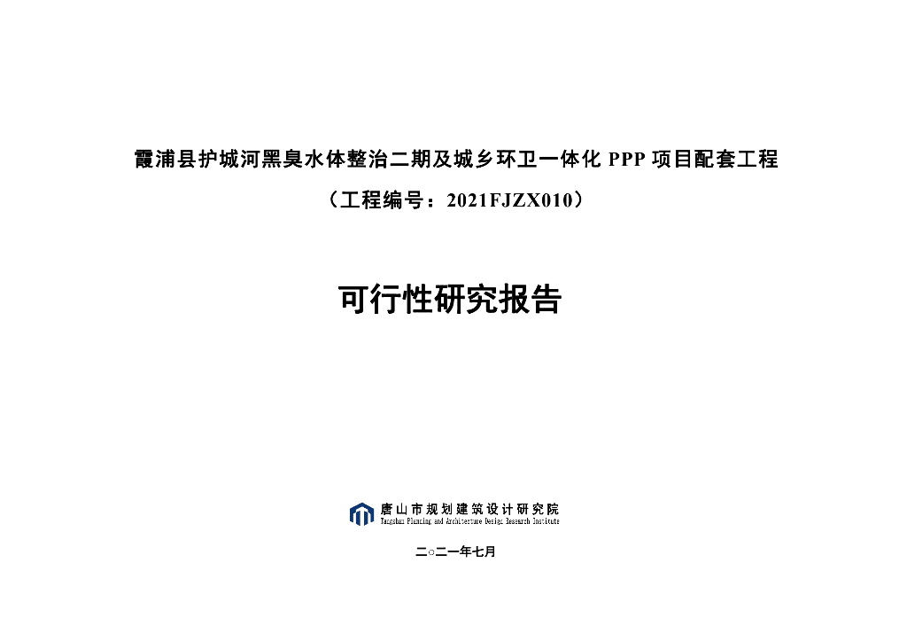 2021FJZX010 霞浦县护城河黑臭水体整治二期及城乡环卫一体化PPP项目配套工程可行性研究报告.pdf
