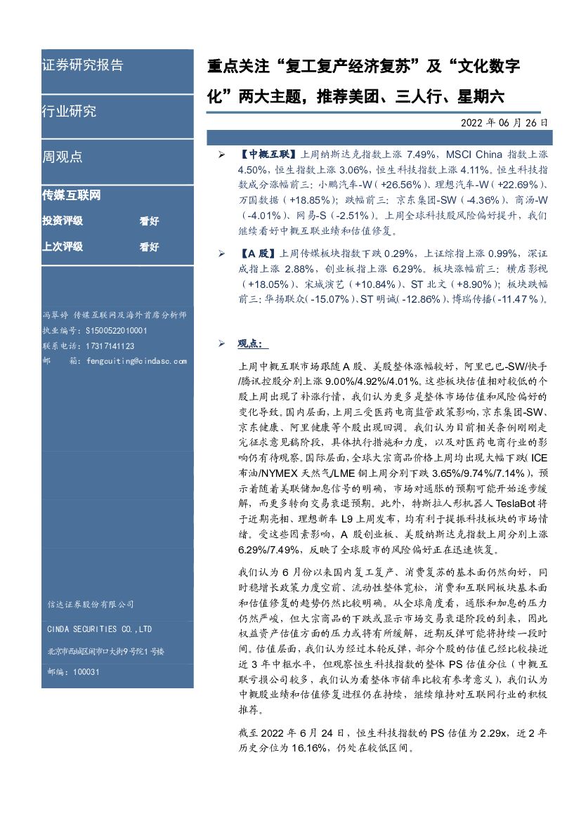 信达证券:传媒互联网及海外周观点:重点关注“复工复产经济复苏”及“文化数字化”两大主题,推荐美团、三人行、星期六.pdf