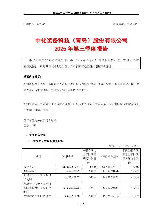 600579-中化装备:中化装备科技(青岛)股份有限公司2025年第三季度报告.pdf
