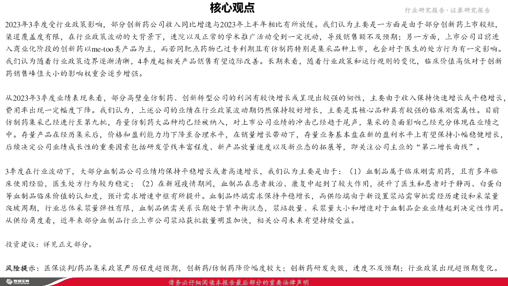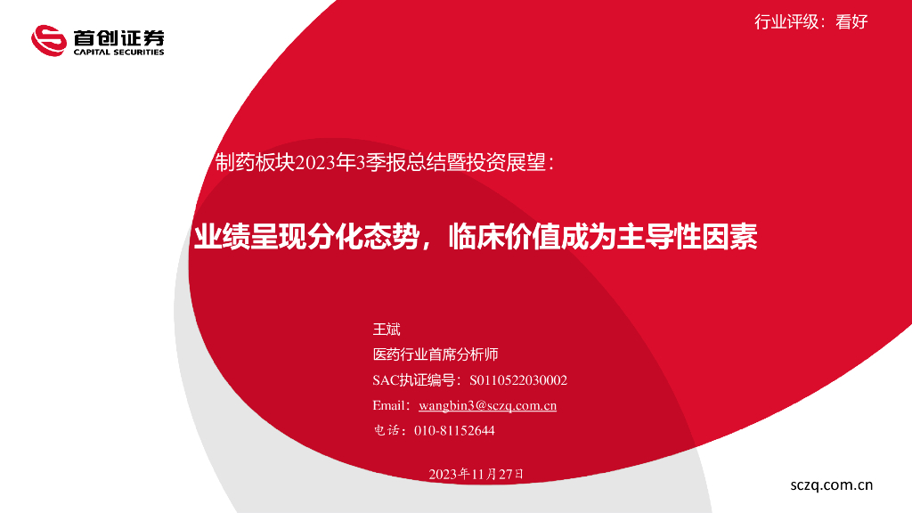 首创证券:制药板块2023年3季报总结暨投资展望:业绩呈现分化态势,临床价值成为主导性因素.pdf