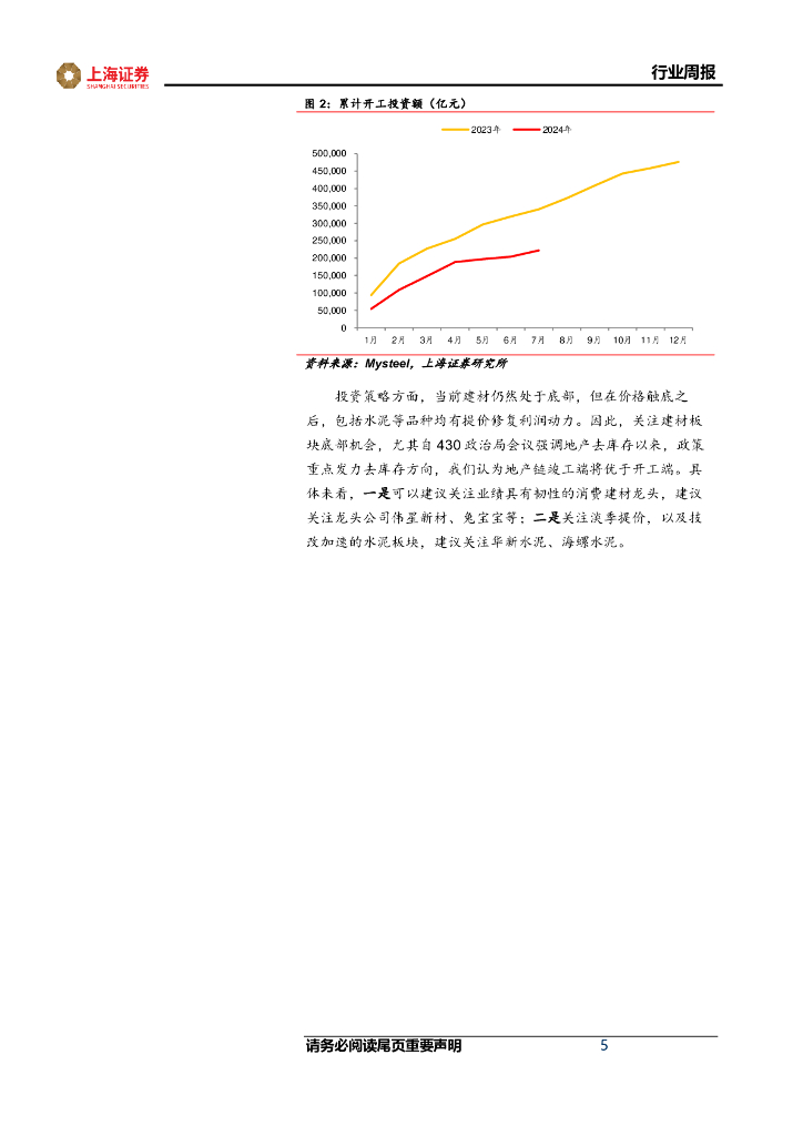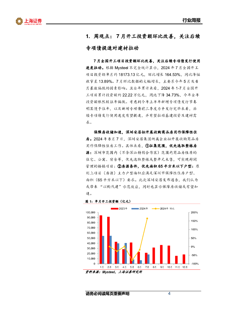 上海证券:建筑材料行业周报:开工投资额环比改善,关注后续专项债提速对建材拉动.pdf