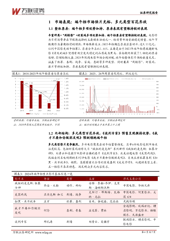 万联证券:传媒行业跟踪报告:丰富种类+“剧转影”+好莱坞多项优势加持,端午档票房有望维持较好表现.pdf