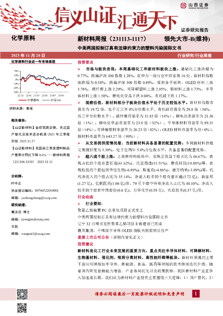 山西证券:新材料周报:中美两国拟制订具有法律约束力的塑料污染国际文书.pdf