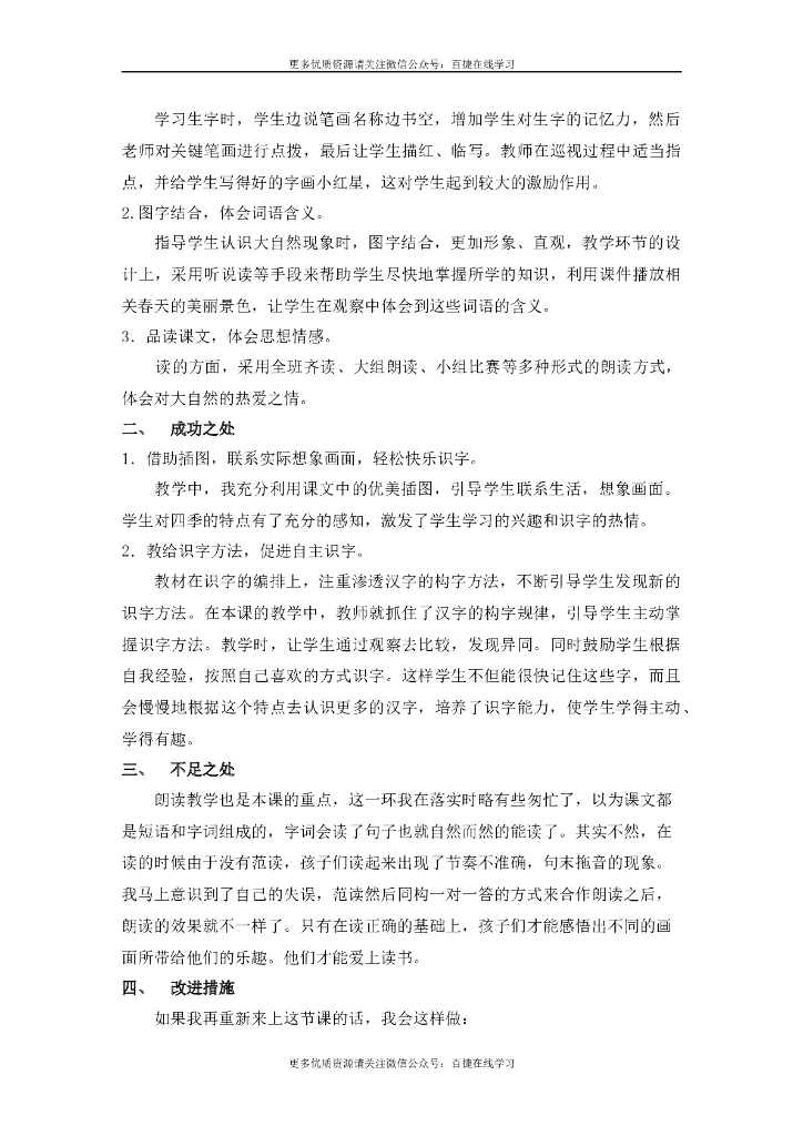 一年级语文下册识字1 春夏秋冬 教学反思.doc