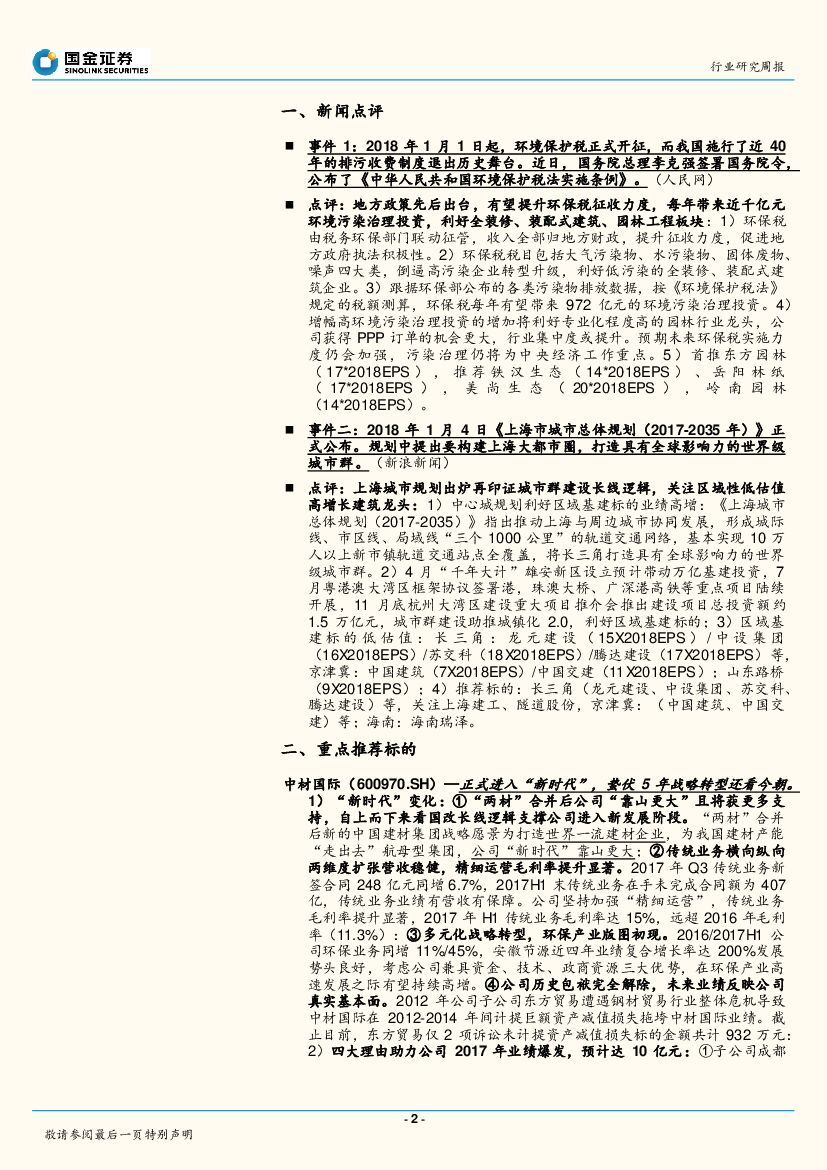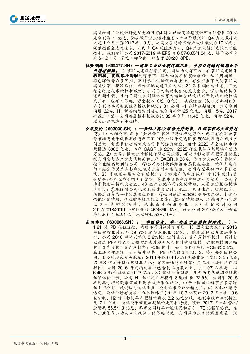 国金证券:建筑和工程行业研究周报:长租公寓/环保税利好装配式建筑/B端家装,地产略显松动迹象提升大建筑估值.pdf