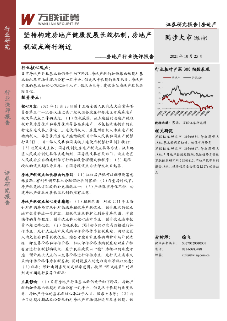万联证券:房地产行业快评报告:坚持构建房地产健康发展长效机制,房地产税试点渐行渐近.pdf