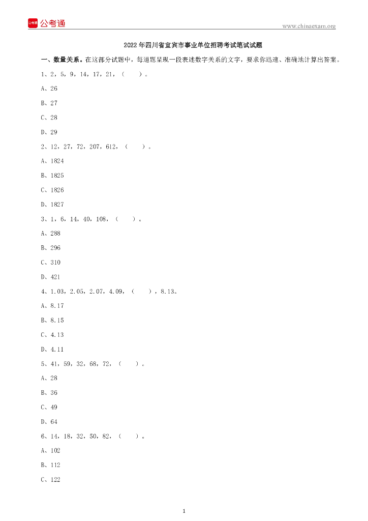 2022年四川省宜宾市事业单位招聘考试笔试试题.pdf