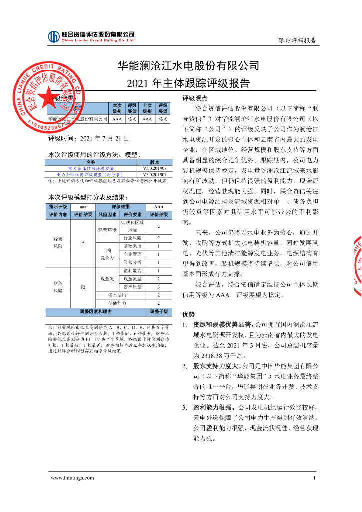 联合资信:华能澜沧江水电股份有限公司2021年主体跟踪评级报告.pdf