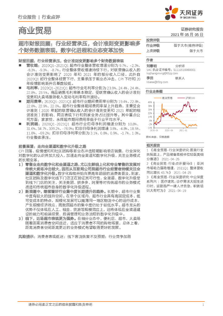 天风证券:超市财报回顾:行业经营承压,会计准则变更影响多个财务数据表现,数字化进程和业态变革加快.pdf