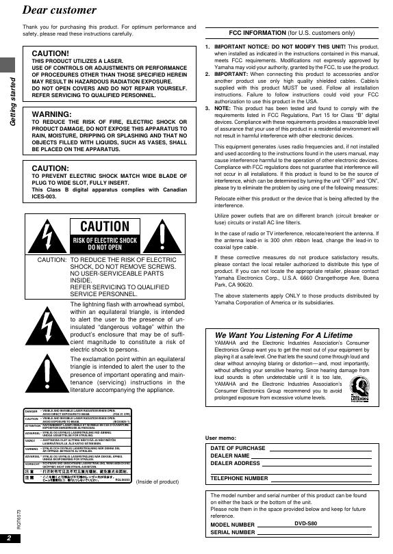YAMAHA DVD-S80 DVD/VIDEO CD/CD PLAYER 用户手册.pdf