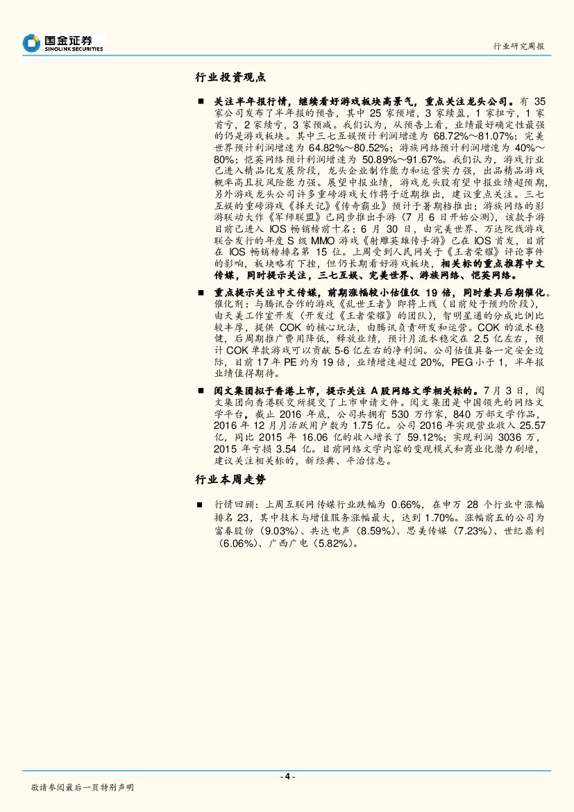 国金证券:传媒互联网研究周报:关注中报行情,持续看好游戏板块.pdf