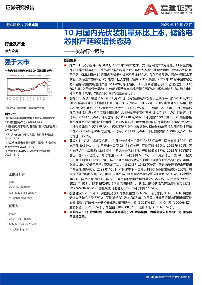 爱建证券:光储行业跟踪:10月国内光伏装机量环比上涨,储能电芯排产延续增长态势.pdf