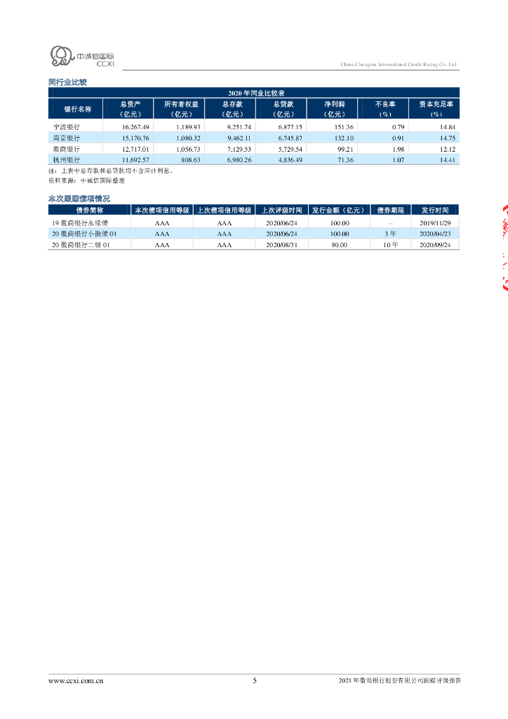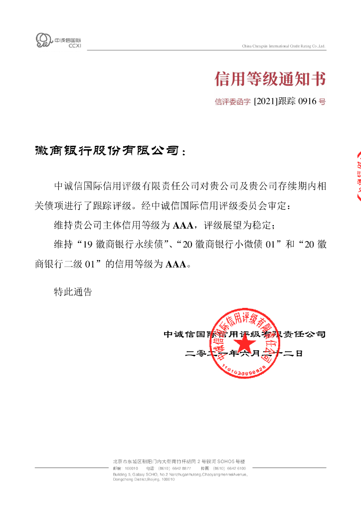 中诚信:徽商银行股份有限公司2021年跟踪评级报告.pdf