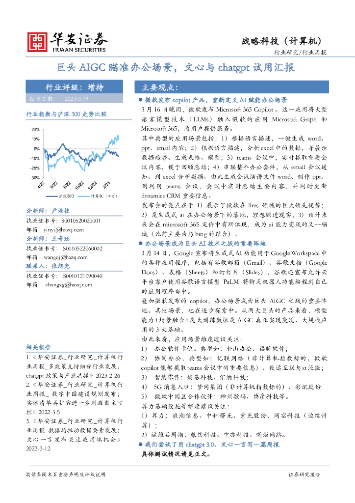 华安证券:战略科技(计算机)行业周报:巨头AIGC瞄准办公场景,文心与chatgpt试用汇报.pdf