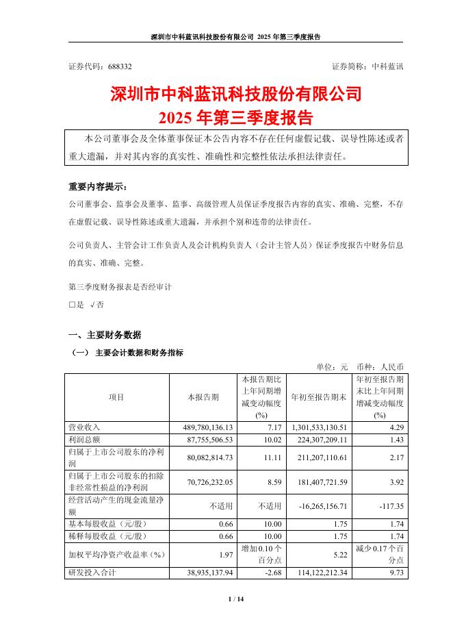 688332-中科蓝讯:2025年第三季度报告.pdf