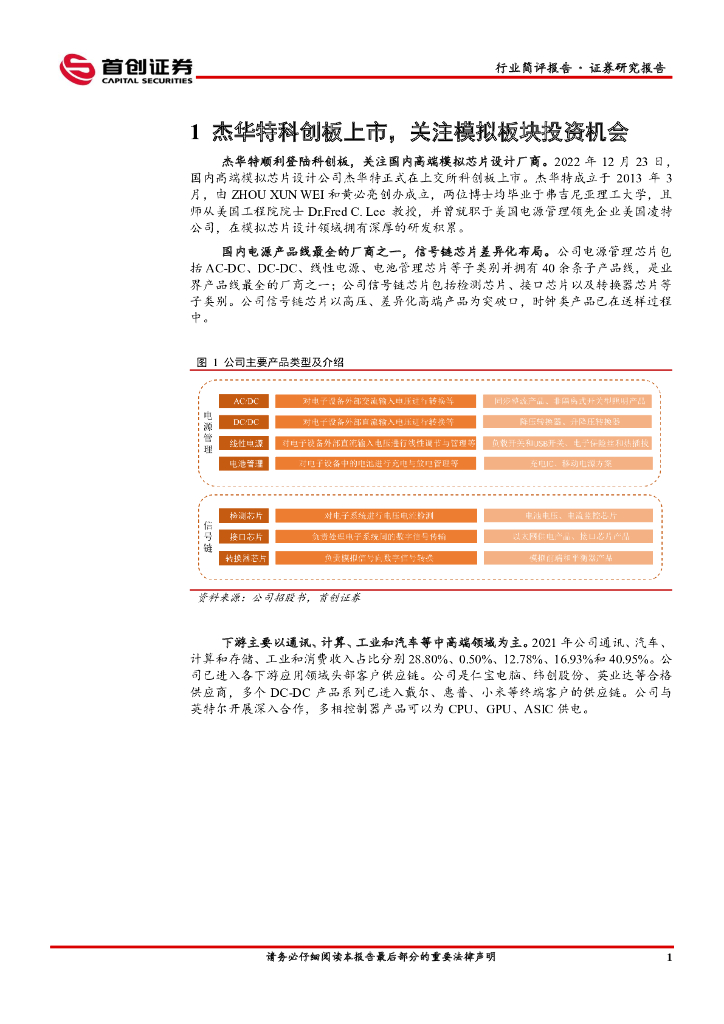 首创证券:电子行业简评报告:杰华特科创板上市,关注模拟板块投资机会.pdf