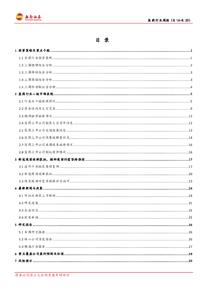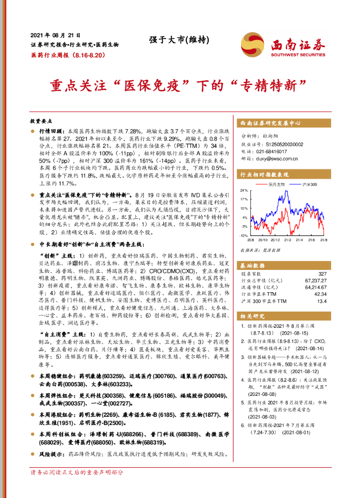 西南证券:医药行业周报:重点关注“医保免疫”下的“专精特新”.pdf