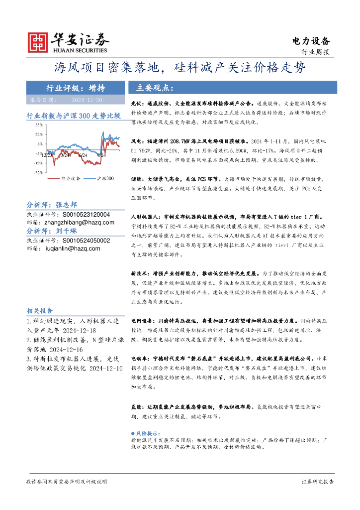华安证券:电力设备行业周报:海风项目密集落地,硅料减产关注价格走势.pdf