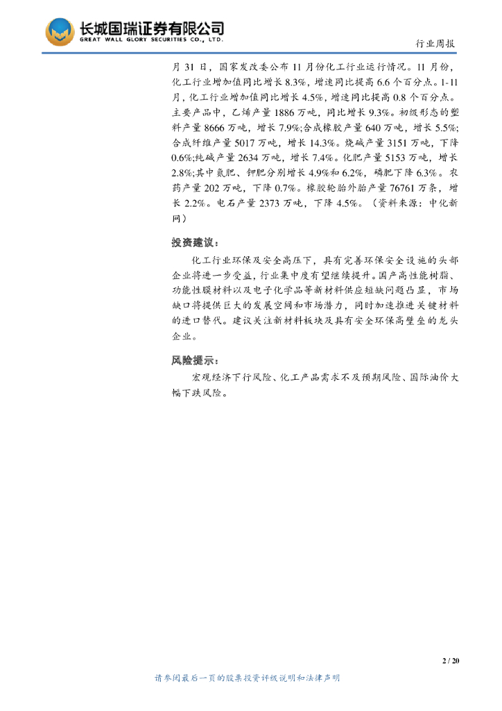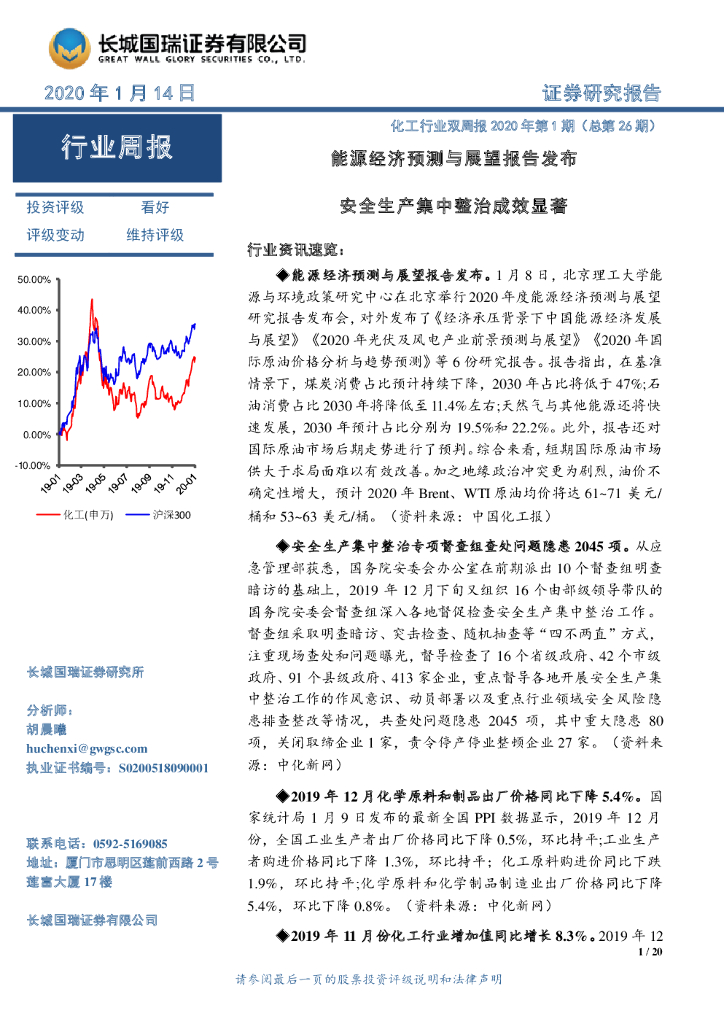 长城国瑞证券:化工行业双周报2020年第1期(总第26期):能源经济预测与展望报告发布 安全生产集中整治成效显著.pdf