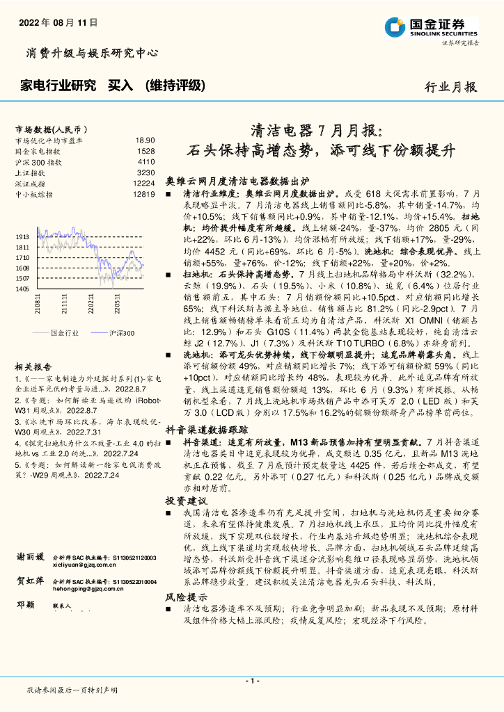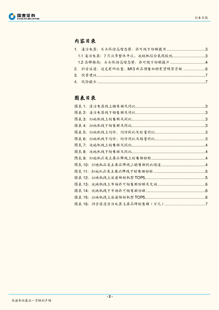 国金证券:家电行业研究:清洁电器7月月报:石头保持高增态势,添可线下份额提升.pdf